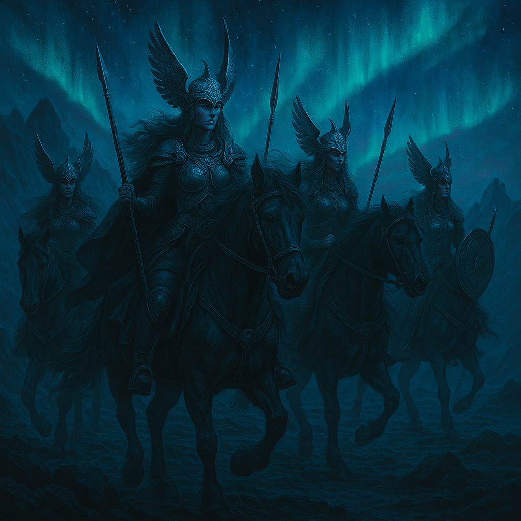 As Valkyrias, guerreiras da mitologia nórdica, escolhem os mortos valentes para o Valhalla, reino dos heróis. Com beleza e força, elas simbolizam coragem e destino nas batalhas. Este é um dos espíritos da Chave do Céu de Fogo.